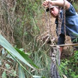 Whilst canoeing down a particular section of the river with guests, we noticed something strange on the river bank. Upon closer inspection, we saw a male spotted genet fighting for its life whilst being trapped in a jinn trap(trap for poachers). Luckily due to the fact that the poor animal was so tired from his struggle, we were able to get it free from the trap and place it in a safe container. The genet was then seen to by Darren from the Raptor and Reptile Centre in Addo, where its arm had to be amputated, but is now successfully rehabilitated and back in the wild.